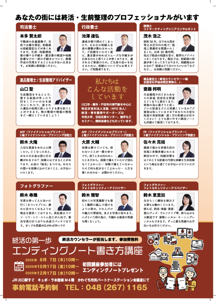 初回参加の方には 終活カウンセラー協会監修エンディングノートプレゼント!!